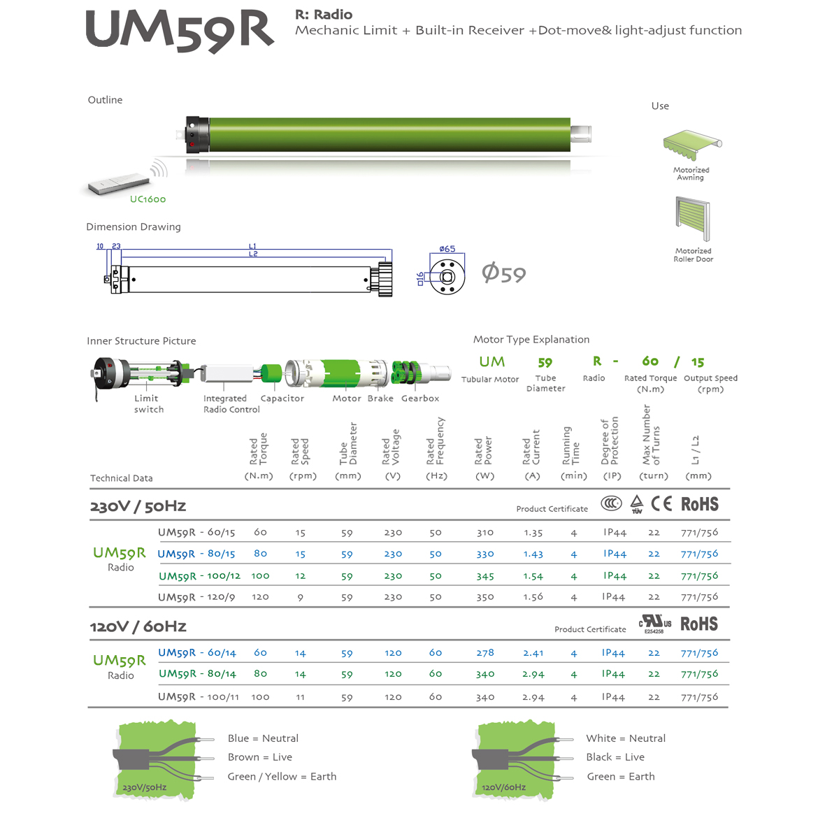 R:Radio/Mechanic Limit+Integrated radio control+jogging & tilt
